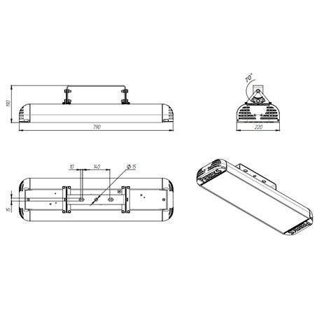 Габаритные размеры светильника, мм 790х250х255