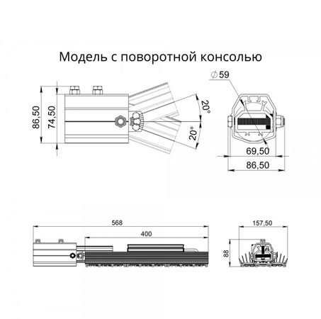 | Габаритные размеры светильника, мм | 440 х 158 х 103 |