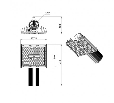 Оптическая линза 135x55 градусов позволяет добиться высокой эффективности освещения дорожного полотна без слепящего эффекта для участников дорожного движения.